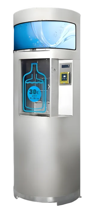 Water vending machines are self-service systems, typically located in public areas, where users can fill their containers with clean, purified water for a small fee.